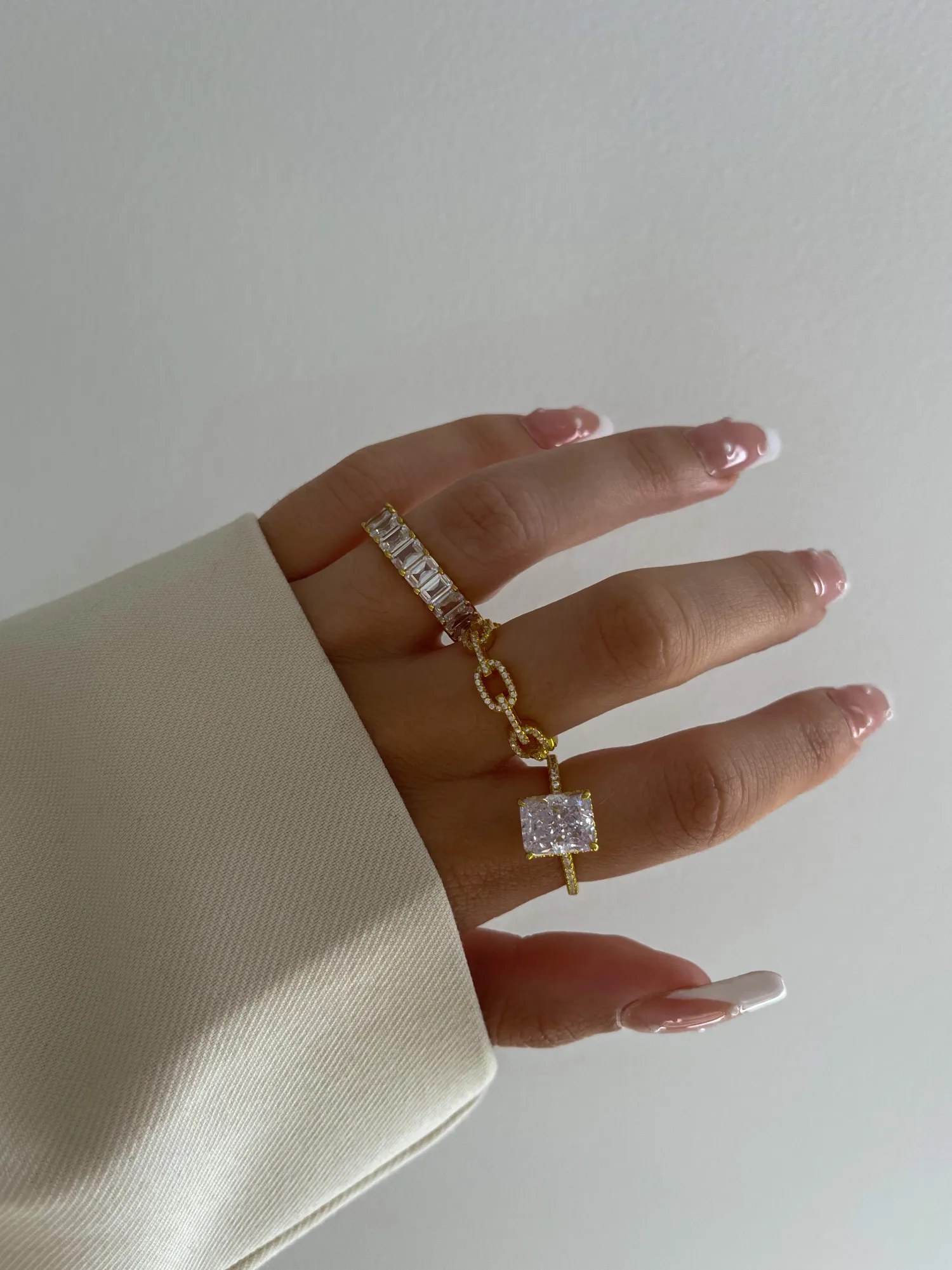Grande Pierre De Zircone 12*8Mm Sur Une Bande Incrustee De Pierres Precieuses Scintillantes Taillees A La Main - Fabriquee A La Main A Partir D’Argent Sterling 925 De Haute Qualite, Plaque Or