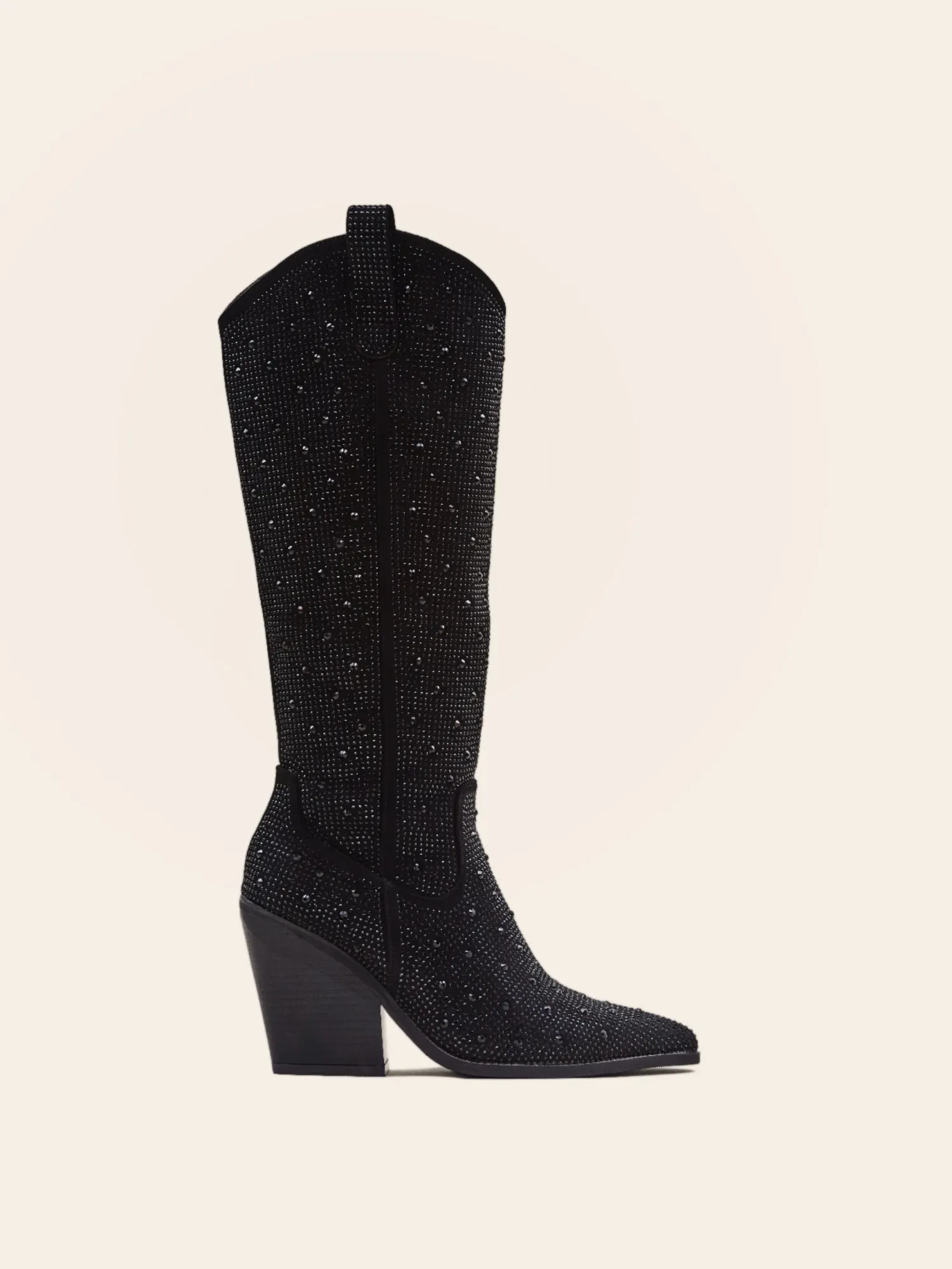 Nos Bottes Romy Allient L’Audace Du Style Santiags Au Glamour Des Strass, Creant Ainsi Une Fusion Unique Qui Ajoutera Une Touche D’Eclat A Votre Look.